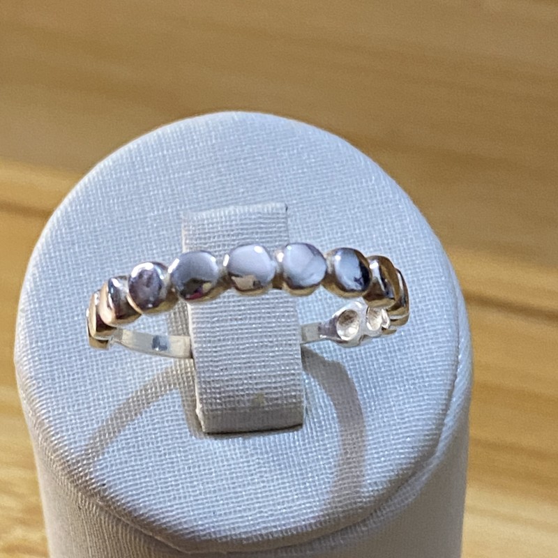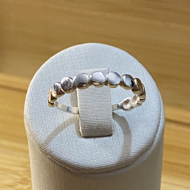 Anel em Prata 925 composto por uma fileira de bolinhas achatadas no topo, com acabamento polido que reflete a luz de forma suave. A faixa é delicada e o design minimalista traz charme sem pesar — perfeito para quem gosta de peças discretas com personalidade. Ideal tanto para uso diário quanto para compor um mix moderno de anéis.
