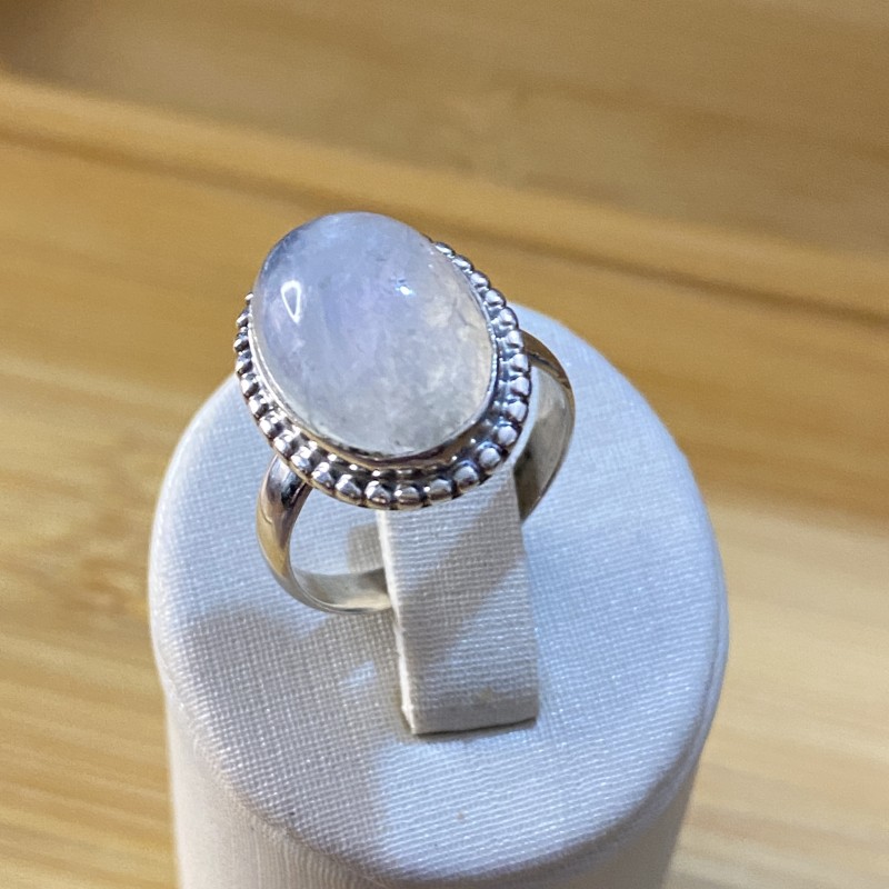 ⭐ Use o anel como peça central em uma composição com outros anéis finos em prata ou combine com tons neutros e azuis para ressaltar o brilho perolado da pedra.