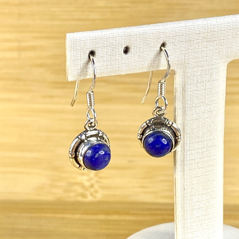 Com design delicado e pedra natural de tom azul profundo, este brinco de anzol em prata 925 traz o encanto do lápis-lázuli em uma versão pequena e versátil. Uma peça autêntica que combina misticismo e elegância.