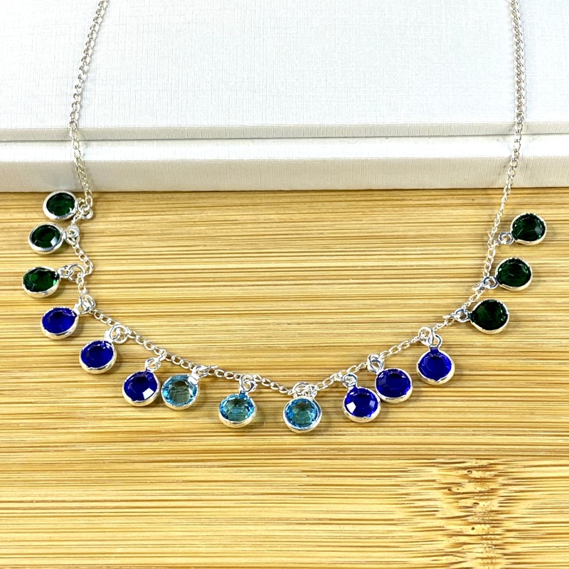Chocker em prata 925 com pingentes de zircônias azuis e verdes, lapidadas para refletir a luz com intensidade e brilho. Uma peça vibrante que transmite frescor e elegância, perfeita para dar cor e destaque ao seu visual.