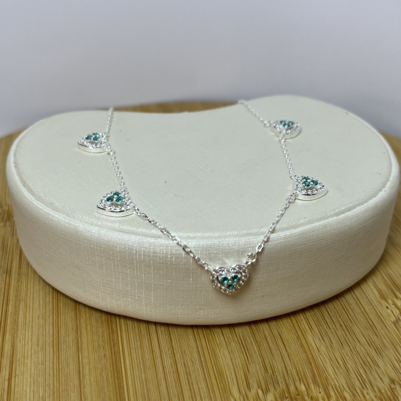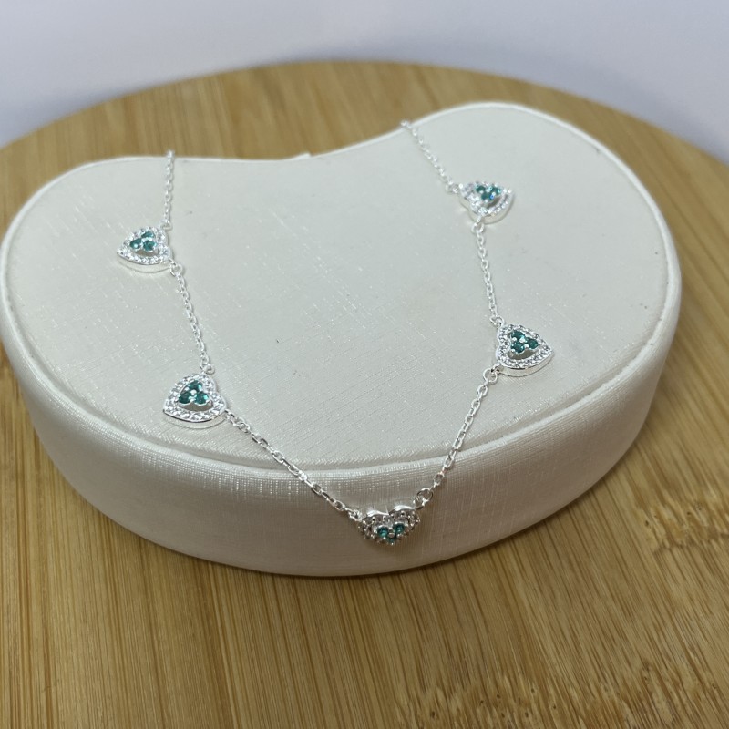 Com delicados coraçõezinhos interligados, ela cria um brilho suave e contínuo no colo — perfeito para quem ama peças femininas, leves e com significado.