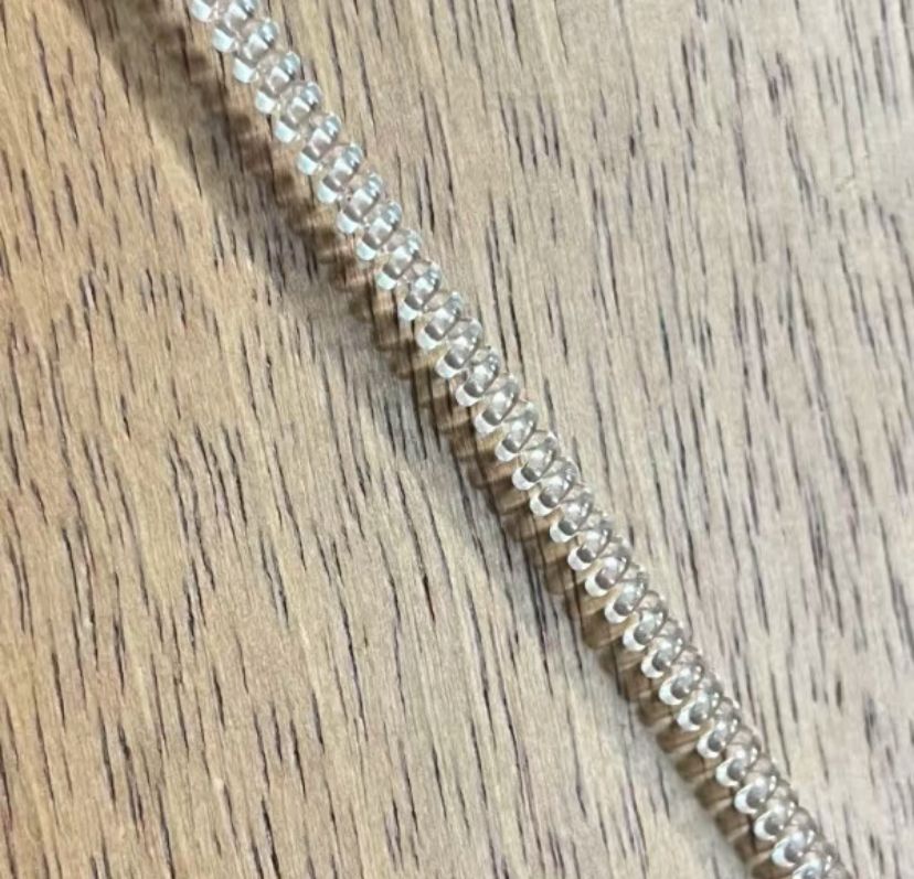 10 cm de comprimento sem esticar e quee pode ser cortada ou enrolada no aro do anel.
