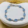 A Pulseira com Calcedônia em Navetes — Azul Esverdeado — Prata 925 (19 cm + extensor) é uma peça delicada e elegante que une acabamento refinado e charme natural. Apresenta pedras ovais de calcedônia em lapidação cabochon/facetada, montadas em engastes de prata 925 que valorizam a translúcidez e os sutis reflexos das gemas. O extensor permite ajuste de caimento, tornando a peça confortável para diferentes pulsos; o fecho de mosquetão garante praticidade e segurança. Versátil, funciona sozinha como ponto-foco ou compondo mixes com correntes finas e outras pulseiras delicadas — perfeita para quem busca um toque suave de cor com acabamento sofisticado. Por se tratar de pedras naturais, cada exemplar é único e pode apresentar pequenas variações de cor e padrão.
